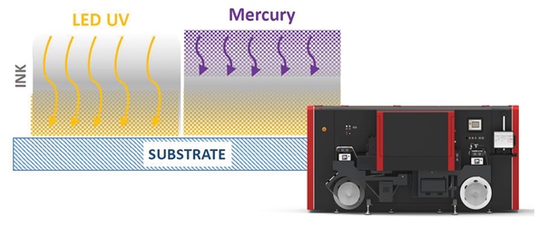 Door UV pinning na zwart toe te passen volgend op de CMYK-overdracht, ‘bevriest’ DuraCure alle kleuren in het beeld en handhaaft het een uniforme optimale kleurbriljantie en glans. Het gebruik van LED-droging met de kenmerkende mogelijkheid om diep in de inktlagen door te dringen in combinatie met HG- of kwikdroging voor lichte maar effectieve droging van het oppervlak van de UV-inkt biedt het beste van twee werelden. Het intelligente gebruik van deze bestaande technologieën is wat het verschil maakt. Ze bundelen hun krachten op een optimale manier om minder energie te verbruiken, wat op haar beurt een positieve impact heeft op de levensduur van de drooglampen.