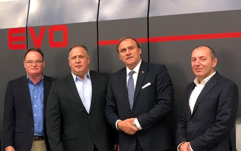 Foto v.l.n.r.: Randy Vandagriff, President, Enterprise Inkjet Systems Division and Vice President, Eastman Kodak Company, Jim Continenza, Executive Chairman, Eastman Kodak Company, Aldo Peretti, President and CEO of the Uteco Group, Riccardo Passerini, Sales Director Mediterranean & Balkans Region, Enterprise Inkjet Systems Division, Eastman Kodak Company.