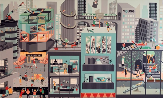 Marion Delage, medeoprichter van decoratiebedrijf Parégrine, en illustrator Mariana Castillo hebben indruk gemaakt op de jury met hun project genaamd “Youse city mural” in de categorie office. Met deze vrolijke en warme illustratie, geprint op behangpapier, wilden Delage en Castillo de gedachte achter en het team van het bedrijf weergeven, om ze trots te laten zijn op hun eigen werkplek: “We zijn vereerd met deze prijs. De wandversiering maakt het mogelijk om jezelf te onderscheiden en om van de leefomgeving een vertegenwoordiging te maken van jouw eigen merk. Het feit dat een belangrijke speler in de visuele communicatiesector zoals Antalis ons project heeft uitgekozen is voor ons een teken van vertrouwen en erkenning."