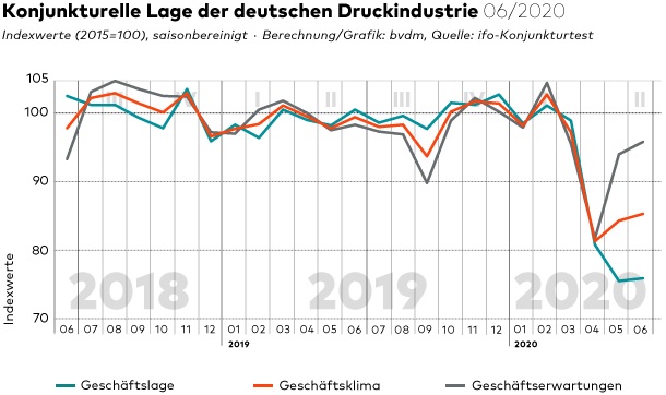 Het ondernemingsklimaat bij onze oosterburen ligt aanzienlijk onder het niveau van vorig jaar, mede als gevolg van de corona-pandemie, maar wist zich in juni iets verder te herstellen. Dat meldt de Duitse werkgeversvereniging voor grafische bedrijven bvdm.