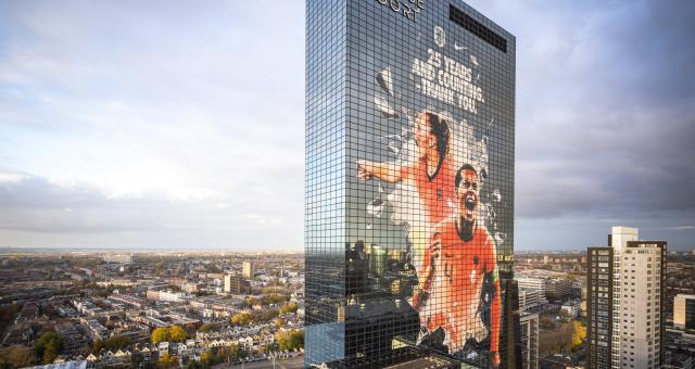 Het Rotterdamse Cubord Signmakers plakte voor dit ontwerp maar liefst 2200 m2 geperforeerde one way vision folie op de ruiten. Een uitgebreid interview met de makers lees je terug in de aankomende Sign Special van PRINTmatters.
