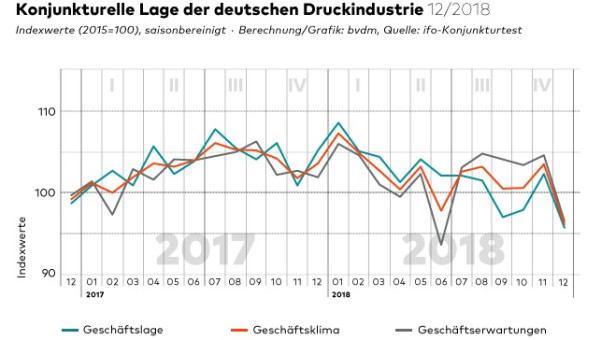 De stemming onder Duitse drukkers in december 2018 was precies het omgekeerde van het jaar ervoor; negatief.