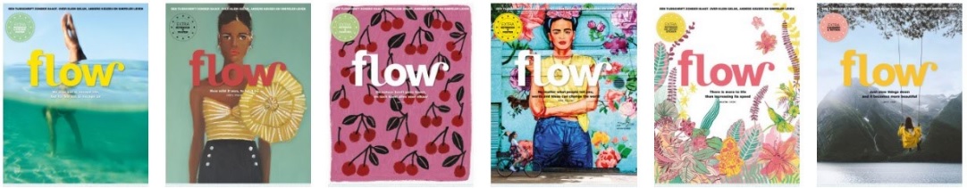 Onze missie: ‘Flow is a worldwide platform that inspires people with life lessons about slowing down and simplifying life in today’s fast-changing society.’ Flow is opgericht in 2008 door de huidige creative directors en is de afgelopen tien jaar uitgegroeid tot internationale titel. Flow verschijnt in vier talen in veertig landen. Flow wordt internationaal geroemd en groeit hard in de USA. Er is een succesvolle licentiedeal met de Amerikaanse uitgeverij Workman. Speciaal voor de Engelstalige markt maakt het Nederlandse team samen met deze Amerikaanse uitgever boeken, kalenders en stationery, waaronder A Book That Takes Its Time, een bestseller waarvan al ruim 200.000 exemplaren zijn verkocht.