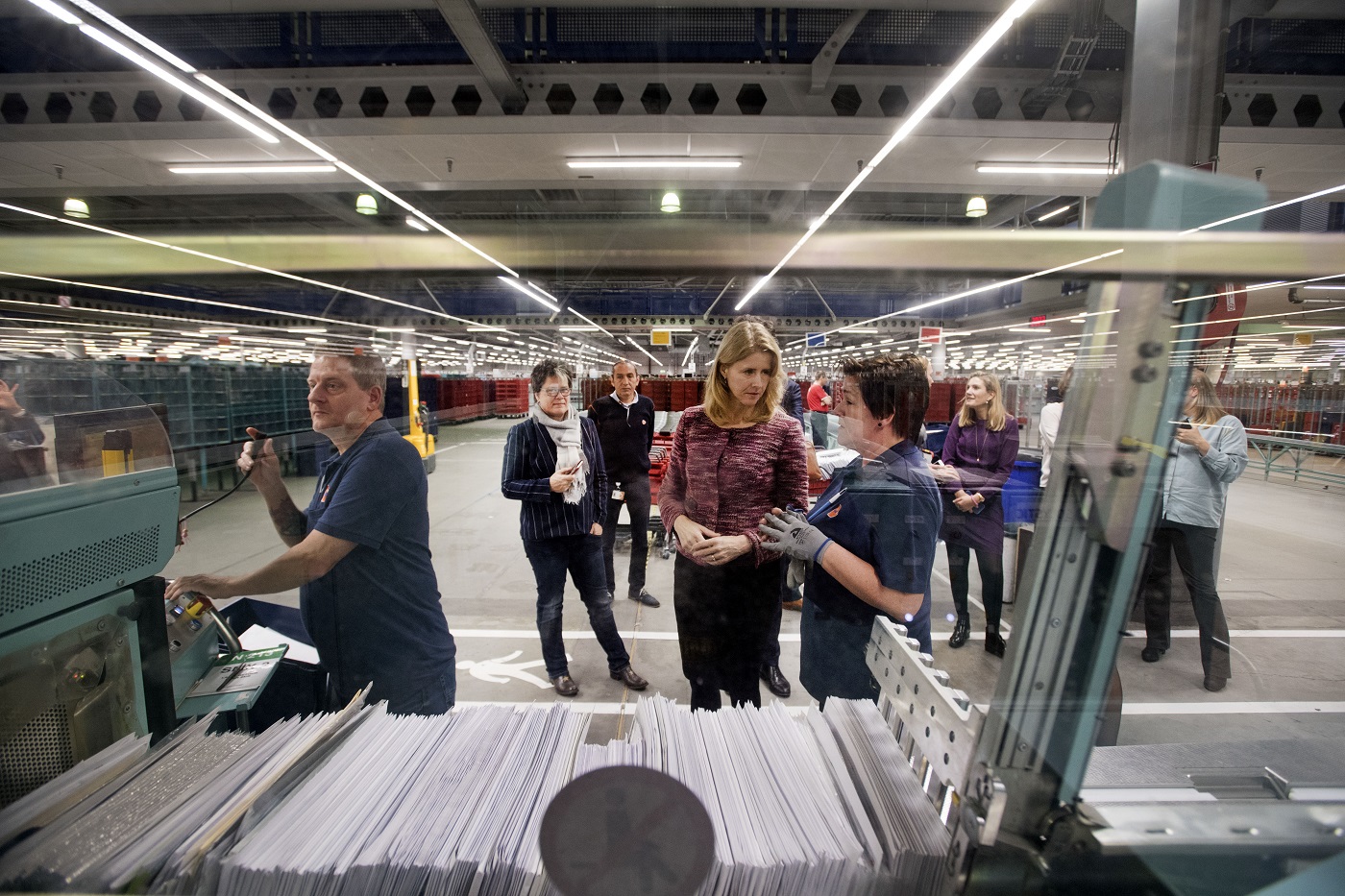 Mona Keijzer tijdens een werkbezoek aan het sorteercentrum van PostNL in Nieuwegein. Zij heeft als staatssecretaris Economie en Klimaat het postmarktbeleid in haar portefeuille. Alle ogen zijn nu op haar gericht in de postsector: gaat zij de Autoriteit Consument & Markt overrulen en de overname van Sandd door PostNL alsnog goedkeuren? - ANP