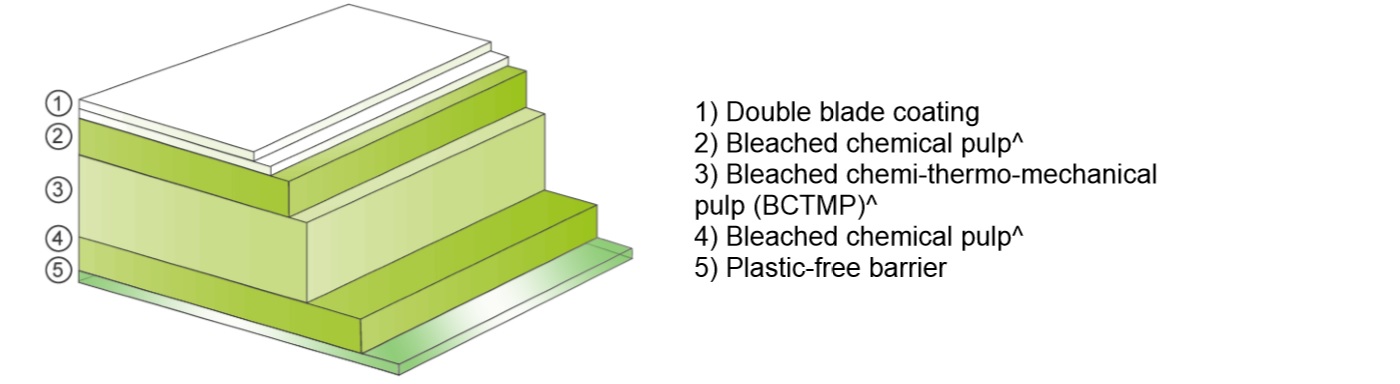 Structuur van het eco-barrièrekarton, dat in flexo of offset bedrukt kan worden.