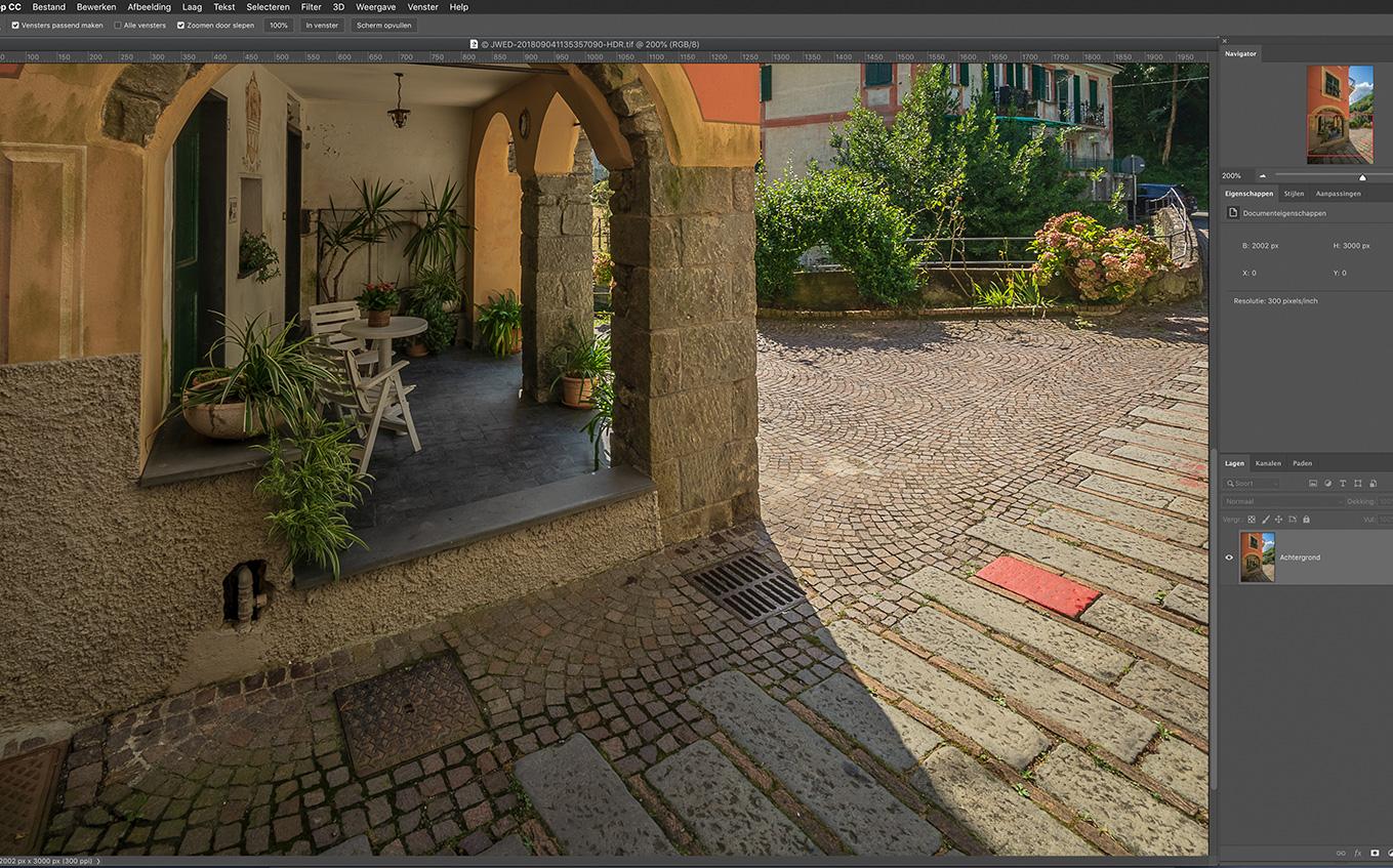 Dat geldt met name als je een stukje wil klonen dat een verloop in het perspectief heeft: omdat je schuin over het vlak kijkt, worden de details naar achteren toe steeds kleiner. In zo'n situatie is ieder stukje van het vlak anders, waardoor gewoon simpel klonen niet lukt. Als voorbeeld nemen we een straatje in een Italiaans dorp, waarbij men een tegel oranje heeft geverfd. Die tegel zou ik toch liever in de kleur van de andere tegels klonen, maar waar haal je in dit geva