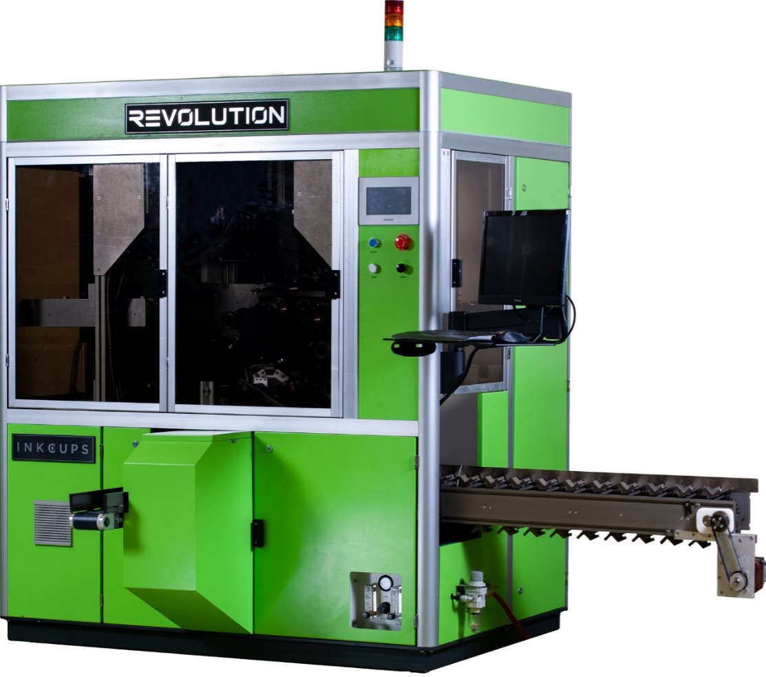 Met deze machine speelt Inkcups in op de vraag naar kleine op maat geprinte hoeveelheden. De Revolution is voorzien van een automatische in- en uitvoer, print full colour 360 graden met een resolutie van 1200 dpi. Volgens de bouwer kan het diverse soorten materiaal verwerken, zoals kunststof, metaal en glas. ‘We zijn trots op deze nieuwe machine,’ zegt Inkcups-oprichter en ceo Ben Adner.