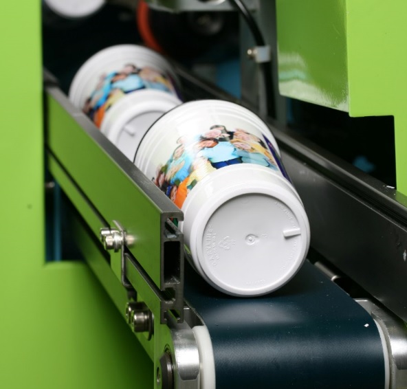 Het Amerikaanse Inkcups brengt een nieuwe inkjetprinter op de markt, speciaal bedoeld voor printen op cilindervormen. De Revolution kan zo’n 600 bekertjes, flesjes of andere cilindervormige producten per uur full colour beprinten.