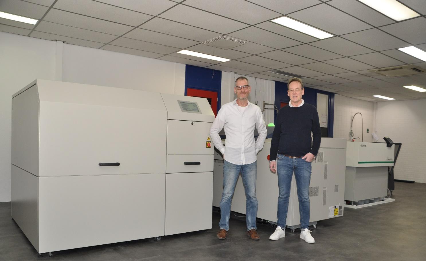 Foto: De Luxe-configuratie met medewerkers Henk Huitsing (links) en André Kuik (rechts) van de prepress- en ict-afdeling.
