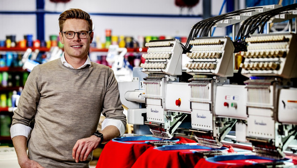 De Groningse textieldrukker Eco Textieldruk zag door het schrappen van events en festivals de omzet teruglopen. Ondernemer Jos van der Mijl kocht vervolgens een Chinese mondkapjesmachine en produceert nu tot 300 mondkapjes per minuut.