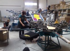 Beeld van de, voorheen normale, textieldruk-situatie.
