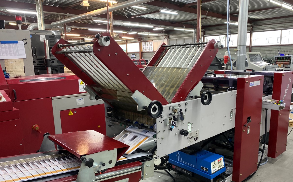 ‘Om die reden zocht ik ook een bijzondere machine waarmee je omslagen met flappen kan rillen en vouwen. Een paar maanden terug heb ik via Robert van Wendel de Joode van Rob-Son een Sitma Mastermail gekocht, om periodieken voor mijn klanten ook te kunnen verzenden een aan te bieden bij de PostNL. Ik vroeg hem rond te kijken naar zo’n flappenmachine. Die machines zijn niet eenvoudig te verkrijgen, maar een paar weken terug hoorde ik dat Rob-Son een ervaren machine kon laten komen. Deze Petratto Cordoba 3 heeft juist die flappen-specificaties om producten met omslagen bijzonder te verrijken.’