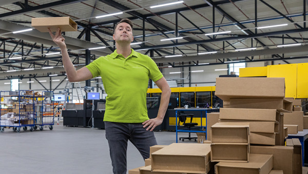 Daarnaast maakt de Pack On Time, anders dan andere inpakmachines, geen gebruik van zogenaamd ‘z-karton’, dat bestaat uit losse vellen die in de machine aaneen worden geplakt tot een eindeloze strip karton. De Groninger legt uit: ‘Wat dat betreft is deze manier van inpakken een stuk duurzamer en voordeliger. Er wordt gebruikgemaakt van gewoon karton, dat veel minder exclusief en goedkoper is. De machine bepaalt door middel van dataverzameling per doosje hoeveel karton er nodig is. Op die manier houden we zo weinig mogelijk restkarton over.’