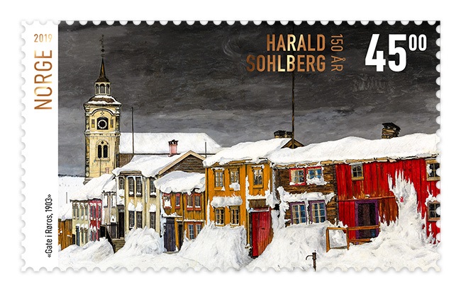 1e Noorwegen. Harald Sohlberg 150 jaar. Straat in Røros in de winter.
