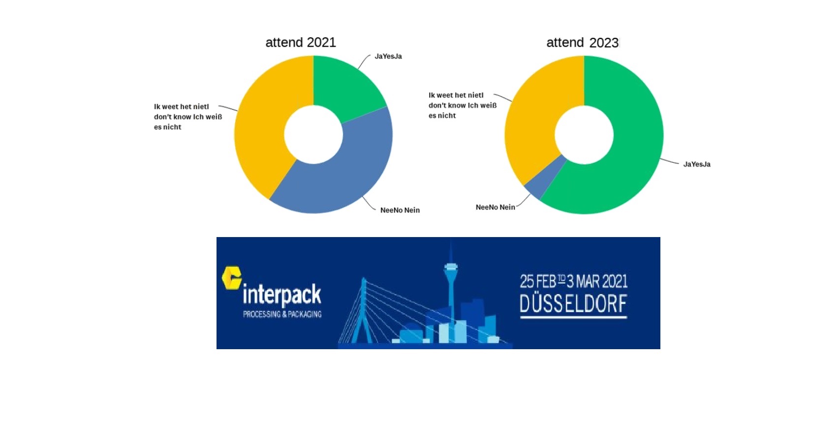 Tijdens de webconferentie op 26 november waren er meerdere exposanten met dezelfde ervaring. Zij krijgen ook geen antwoord van Messe Dusseldorf op hun vragen en vinden deelname aan Interpack 2021 onverantwoord, vanwege het Covid-gevaar en zinloos omdat er geen bezoekers zullen zijn.