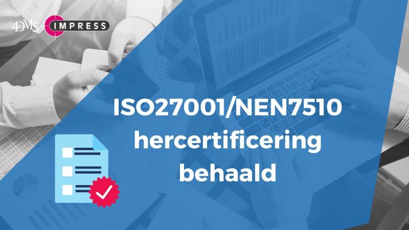 Impress – 4DMS is onlangs opnieuw ge-audit en heeft daarna de her-certificering van de ISO27001 en NEN7510…